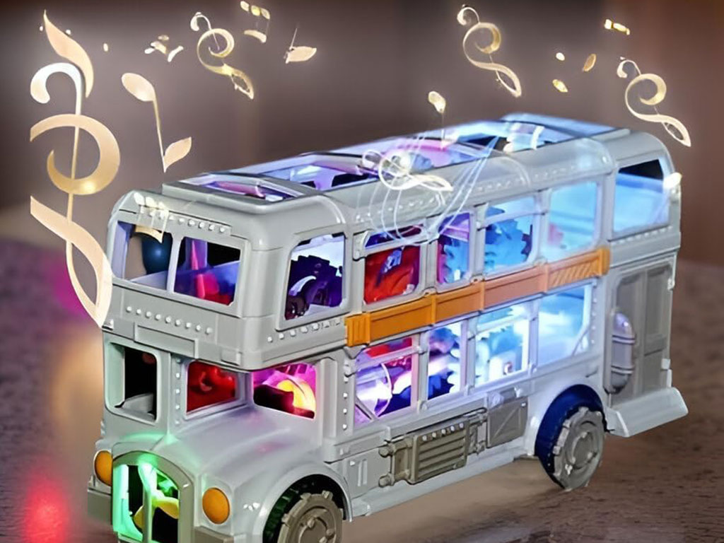 اتوبوس دو طبقه موزیکال و چراغ دار چرخ دنده ای اسباب بازی دخترانه و پسرانه بالای سه سال دارای رنگبندی مدل اتوبوس موزیکال و چراغ دار باتری خور (3 عدد باتری)دارای قفل (قرارگیری قفل درون محفظه در بسته)دارای چهار چرخ ساده دارای یک چرخ جهت چرخش روی زمین ابعاد 23*7*21 سانتی متر