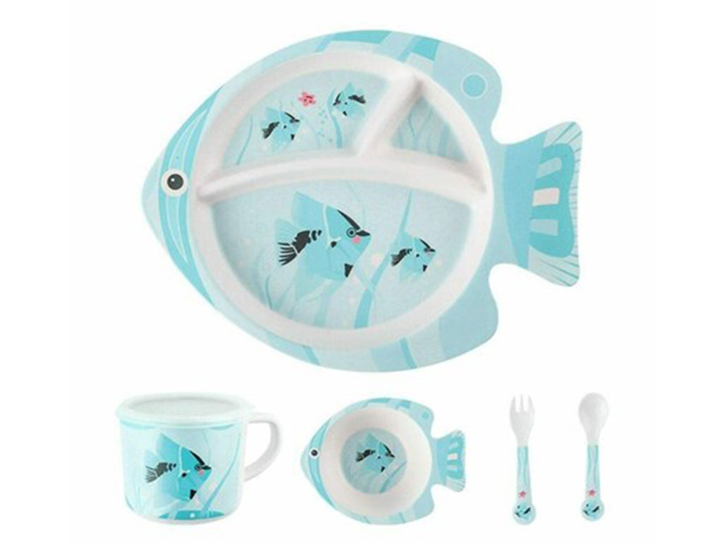ست ظرف غذا کودک و نوزاد بامبو طرح ماهی مناسب ۶ ماه به بالا محتویات بسته بندی:1 عدد بشقاب یک عدد، ۱ عدد پیاله 1 عدد لیوان دسته دار قاشق و چنگال