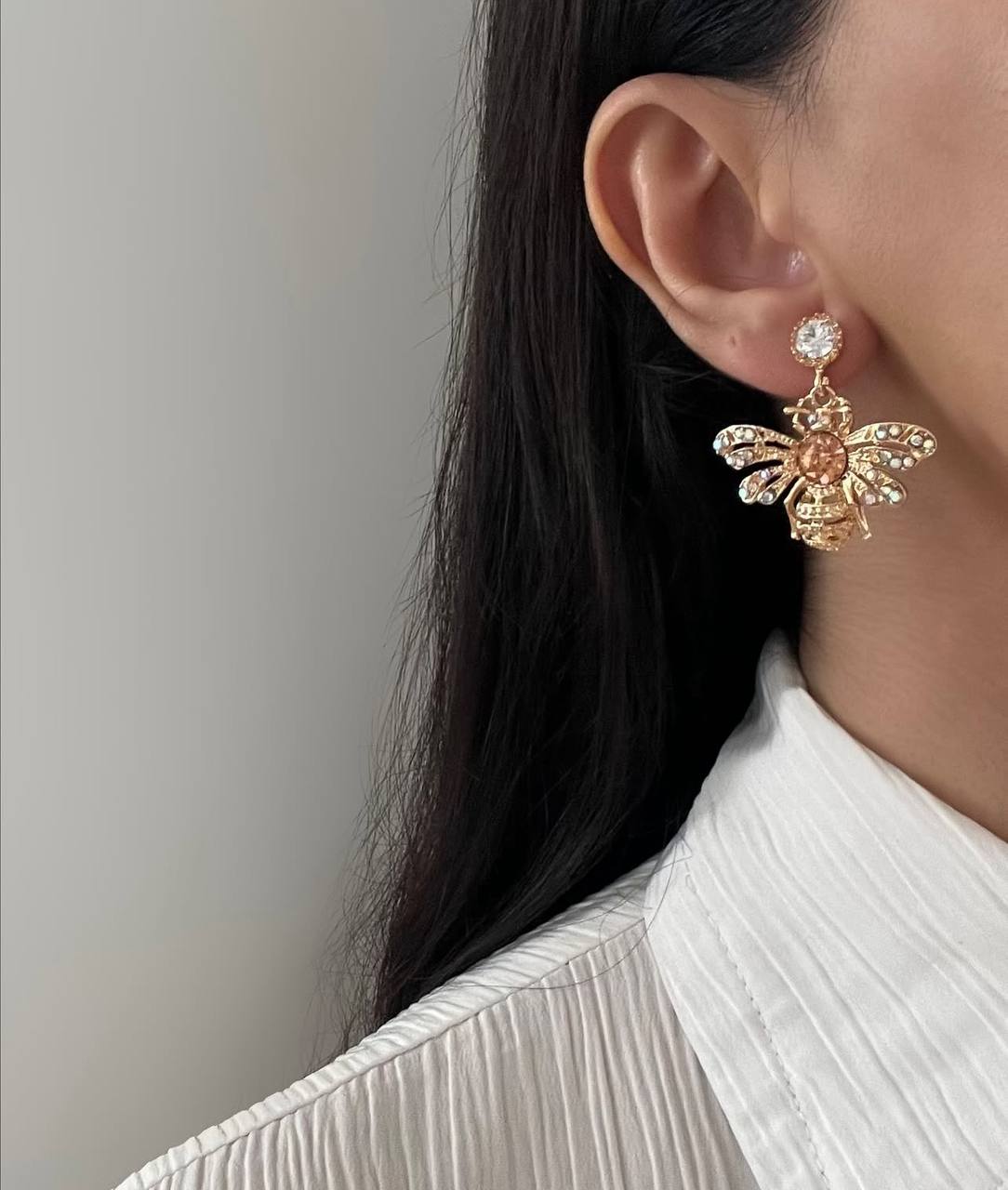 با گوشواره آویزی طرح زنبور، ترکیبی از ظرافت و جذابیت را به استایل خود اضافه کنید! این گوشواره‌ها با طراحی منحصر به فرد و جزئیات دقیق، نه‌تنها زیبایی شما را برجسته می‌کنند، بلکه نمادی از طبیعت و زندگی هستند. سبک و مقاوم، مناسب برای هر مناسبت و روزمرگی. همین حالا بخرید و بدرخشید! 🌟🐝 رنگ ثابت و ضد حساسیت