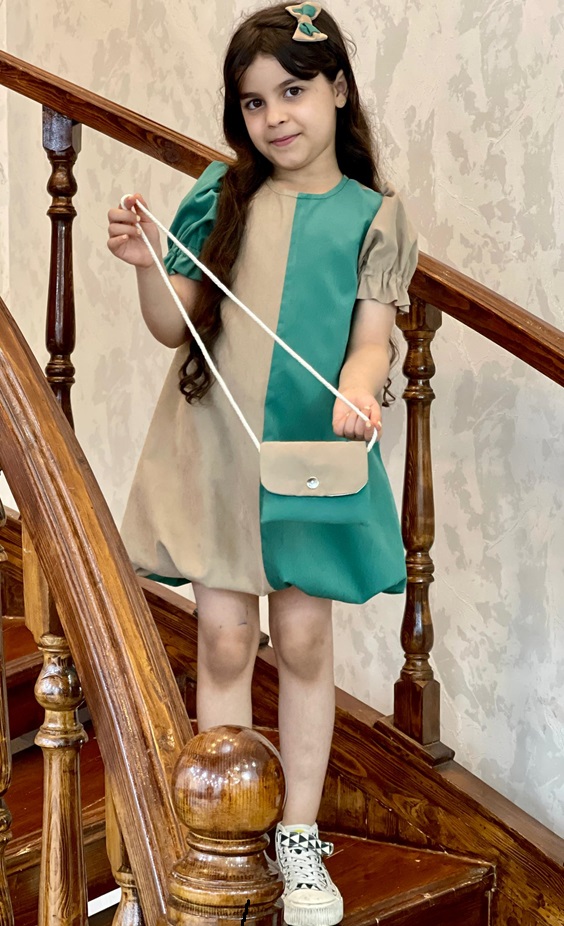 پیراهن دخترانه  قابل استفاده در دو سبک و مدل، جنس میکرو کج راه مناسب پاییز و زمستان به همراه کیف و گیره سر